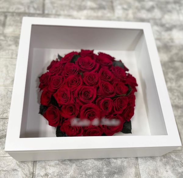 ※ホワイトボックスに赤いバラが映える!オーダーメイドプリザーブドフラワー「Carre」の作品