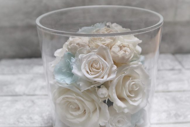 - そんな商品ラインナップ「Colonne」(コロン)を使用したオーダーメイドプリザーブドフラワーの作品例