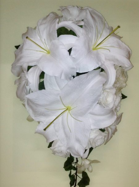 ユリの女王とも言われ、結婚式をゴージャスに際立たせてくれる白色の大きくて上品なお花~多くの人が憧れる結婚式で人気のお花です。キャスケードやティアドロップのブーケ、会場の装花などによく使用されます。特徴的なのは白くて高貴な花姿と甘く強い香り・・。人々をうっとりとした気持ちにさせてくれます。