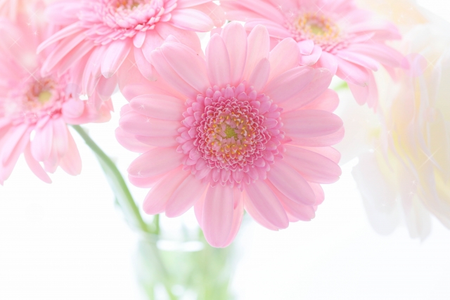 ガーベラは春に最盛期を迎えるお花ですが、1年を通して流通しているので気軽にプレゼントしやすいお花です。ガーベラは見る人が明るい気持ちになるような華やかな可愛らしさを感じるお花です。ガーベラの持つポジティブなイメージはガーベラの花言葉「前進」「希望」などにも表れています。ピンクのガーベラの花言葉の中にも「感謝」があります。ありがとう、これからも一緒に楽しく過ごそうね。と明るく伝えるお花です。