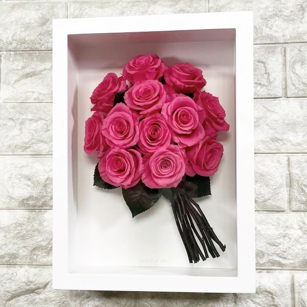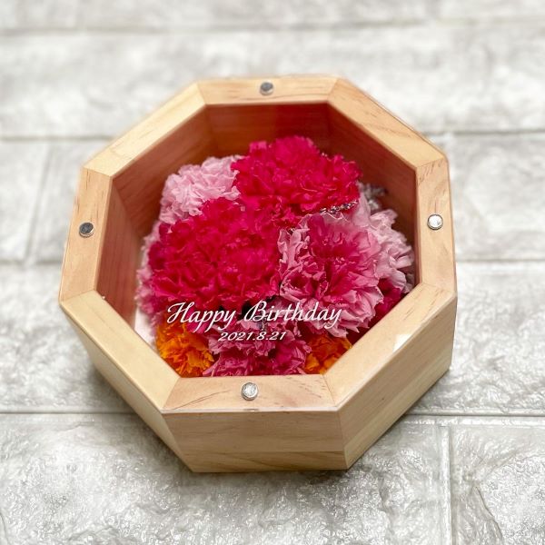 ※ポップな色とりどりのピンクのカーネーションが可愛いオーダーメイドプリザーブドフラワーの作品