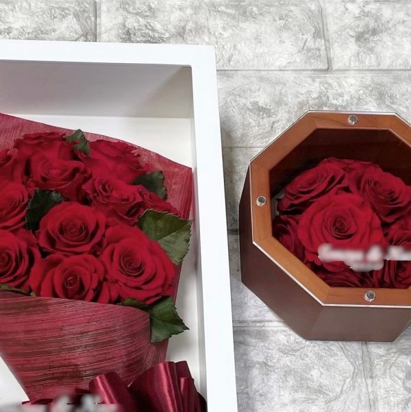 ・作品1「Petit Coffret(プチコフレ)」・・・自分の想い出の作品として~ダズンローズ(12本)の花束として残す~