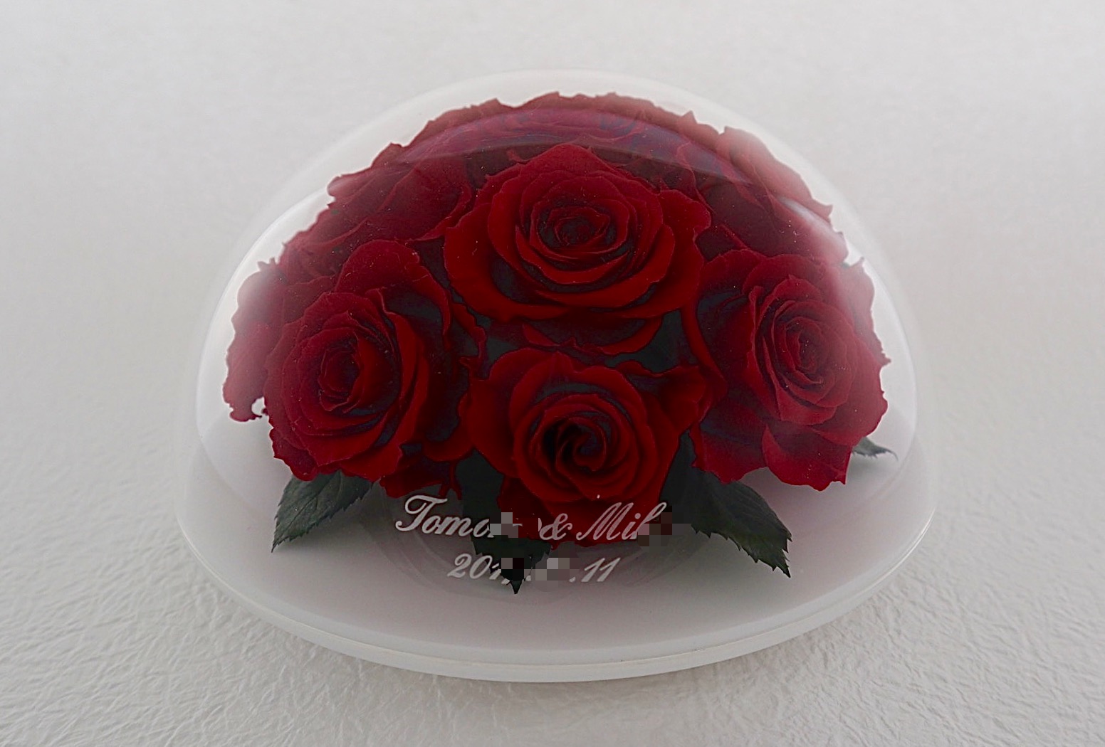 ここでは、プロポーズの定番アイテム「赤いバラ」を使用したオーダーメイドプリザーブドフラワーの3つの作品を紹介します。やはり、プロポーズの定番のお花と言えば情熱の赤いバラが多いですね。