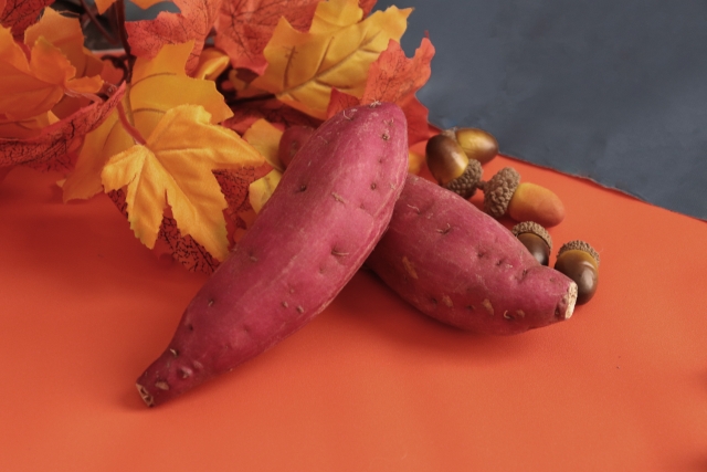 小さい頃、秋に芋ほり遠足に行ったことがある人も多いのではないでしょうか。土をかき分けると現れる赤~赤紫の色の皮がちらりと見えて嬉しい気持ちになったことも。秋の味覚と言えば、まずさつまいもを挙げる人も多いのではないでしょうか。一年を通してお店で見かけるさつまいもは秋に旬を迎え、より一層甘く美味しくなります。さつまいもはビタミンや食物繊維がたっぷり!腸内環境をしっかりと整えてくれます。さつまいもを見ると、どっしりとして深みのある赤~赤紫のイメージが強いですよね。秋=赤(赤紫) をさつまいもから連想する人も多いのではないでしょうか。