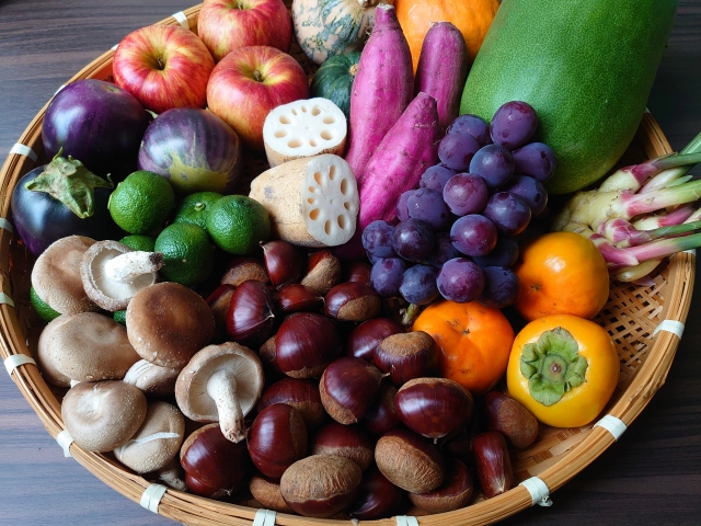 秋の味覚から連想する秋の色・3色