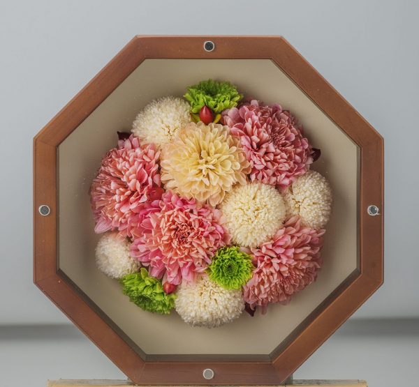 についてお話ししました。昔から馴染みの深い菊ですが、キュートな形とポップな色のマムの登場でますますいろいろなシーンに使用されることが多くなりました。丸い形がポンポンと弾けるようでワクワクした気持ちになるマムの花。見ているだけで明るく楽しい気持ちにさせてくれる色とりどりのマムの花。お祝いのシーンで使用した嬉しい想い出とともにお花を残したいと感じたら・・Fue Flowerのオーダーメイドプリザーブドフラワーの作品でお祝いのマムの花を記念に残してみてはいかがでしょうか。
