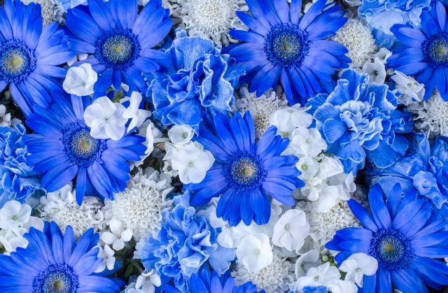 この2つの色は花色としてもとても人気があります。白とブルーの洗練されたクールなイメージのブーケは涼やかな輝きと落ち着いた雰囲気でとても魅力を感じます。ブルーもはっきりとした深い青や白を混ぜた水色など、色の濃淡で受ける印象も変わりますね。