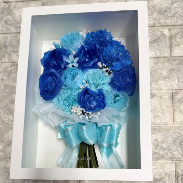 白とブルーの涼やかな輝きが美しい~オーダーメイドプリザーブドフラワー・2つの作品例